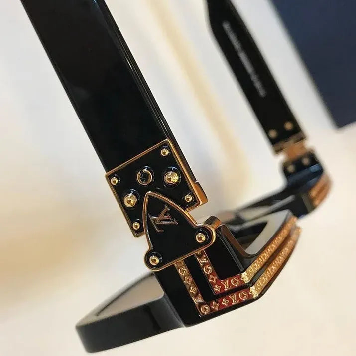 The 1.1 Millionaires sunglasses evoke eyewear worn in Al Capone's Chicago. an old stomping ground of Artistic Director. This pair features a deep beveled front and bright contrast color thanks to the detailed gold-color classic pattern along the top. S-lock hinges are an eye-catching accent taken from sunglasses found in the House archives.